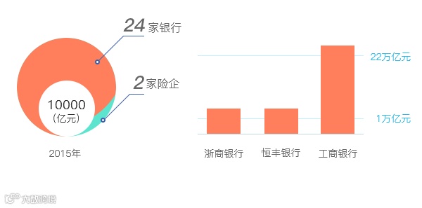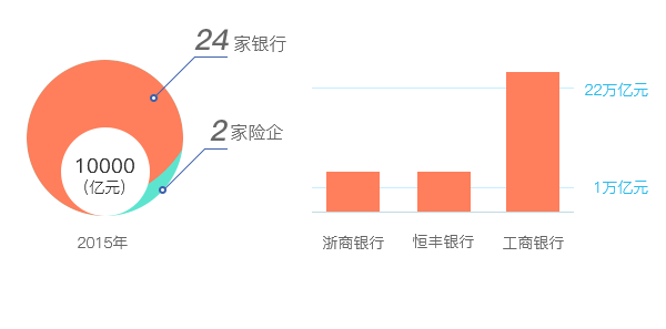 2015年,有24家银行、2家险企资产规模在1万亿以上,其中工行资产规模超22万亿,恒丰银行、浙商银行总资产突破万亿。