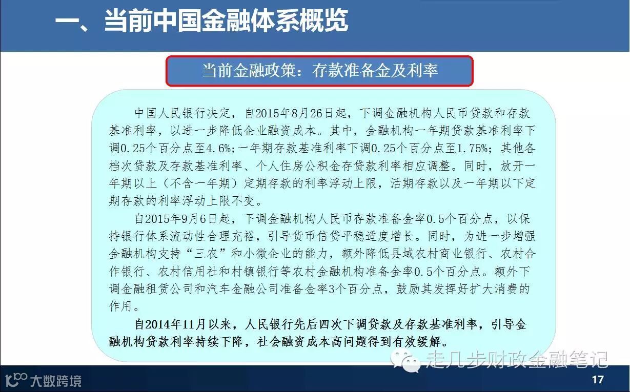 《当前中国金融体系》是一年前为了某次讲座准备的课件的部分内容,现在回过头来看,这些基础的东西还是没有变。对于整体性了解中国的金融环境、金融体系、金融政策有一定的帮助。以下是课件节选: