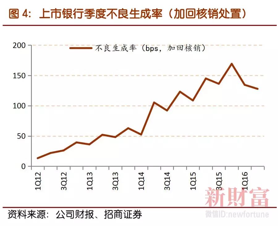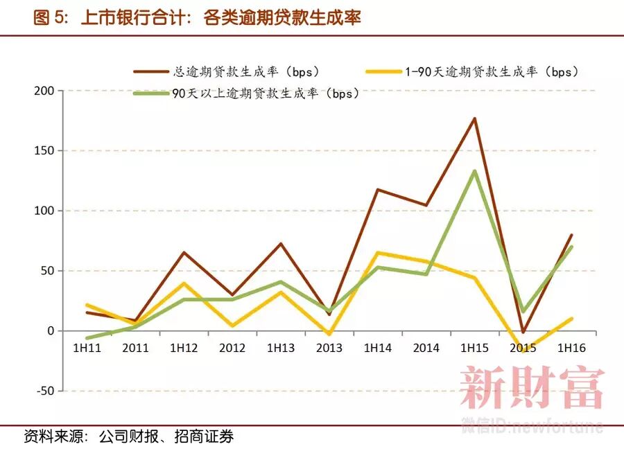 5、对A股上市银行的数据分析显示,2016年以来不良贷款的两大先行指标:关注类贷款和90天以内逾期贷款好转迹象明显,关注类贷款余额和关注贷款率升幅明显下降,逾期90天以内贷款占比收缩。从加回核销处置后的不良生成率角度衡量,银行不良增速企稳甚至略有回落的迹象明显,2016年二季度加回核销后的不良生成率环比下行7bps。不良生成情况有所好转,这是全局性资产质量压力缓解的重要驱动因素。对银行业当前及未来的资产质量状况,我的判断是:存量不良持续释放、增量不良压力趋缓。如外部市场企稳,内部加大风险控制和处置不良力度,银行业的不良率有望向一个相对合理、市场可以接受的均衡点收敛。