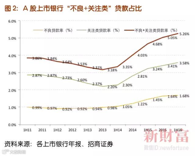 综上,以“不良+关注类”贷款占比评价当前商业银行资产质量,2016年上半年末银监会“商业银行口径”为5.78%,A股上市银行为5.26%。