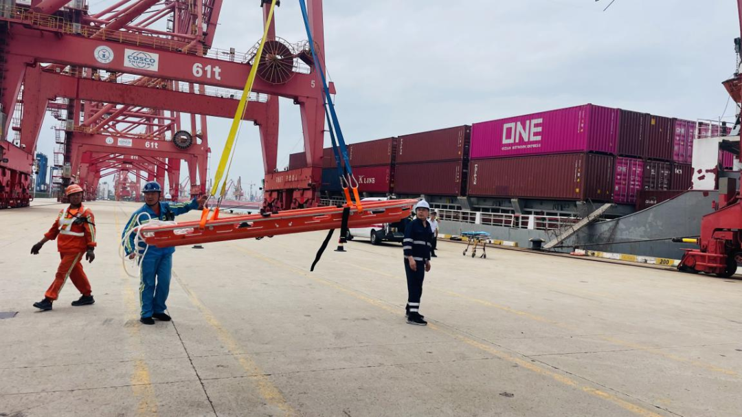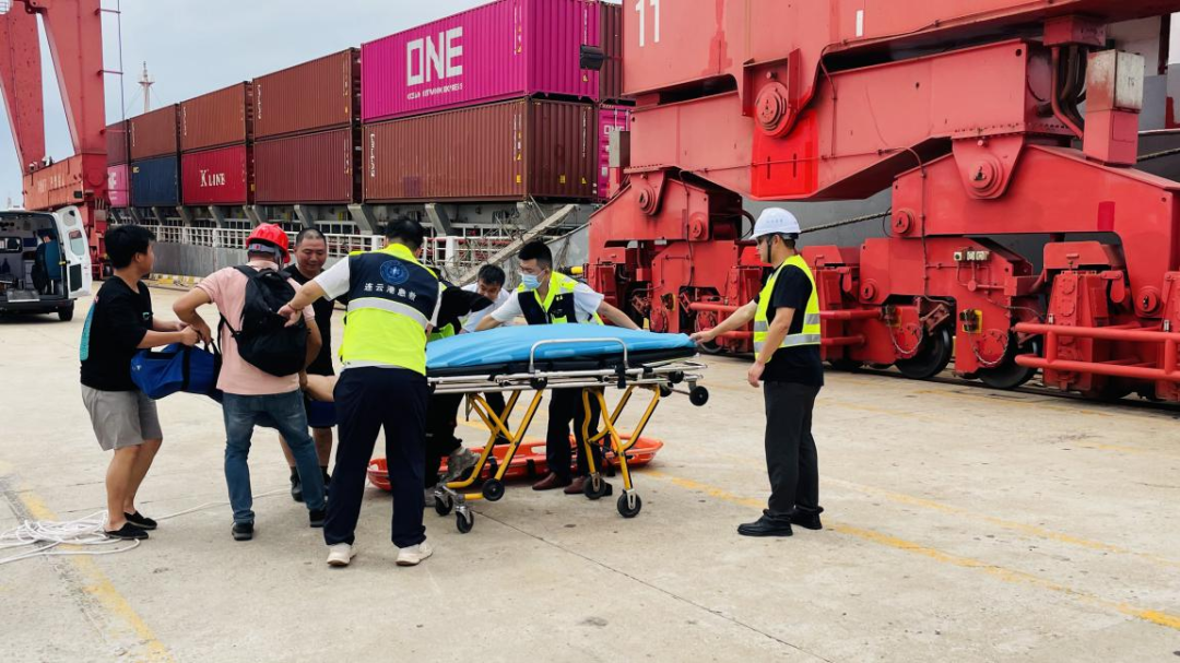 中达66轮靠泊后,当值中控迅速组织配合,将船员安全吊运至码头面,随即120救护人员进行应急处置后,应急车护送120救护车驶离港区,载着病人一路疾驰,驶往东方医院抢救。经及时抢救,船员目前已经脱离生命危险,但仍处于昏迷状态。