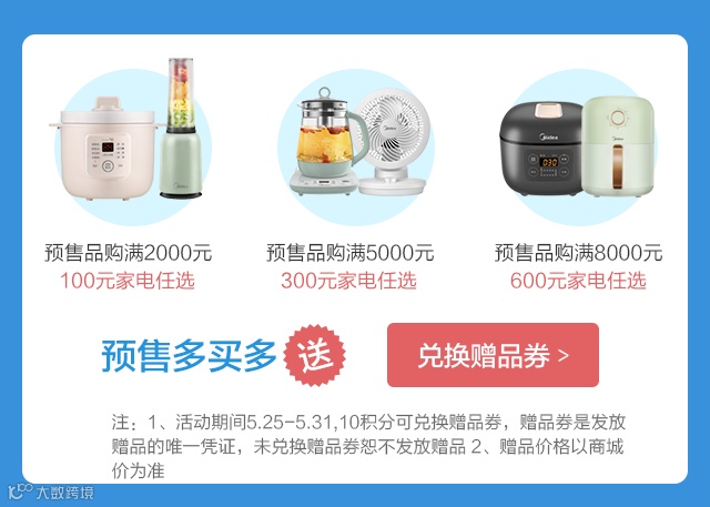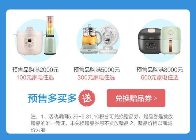 全体美的会员请注意!参与本次美的商城618预售活动,满额都!可!以!再任选一件小家电!