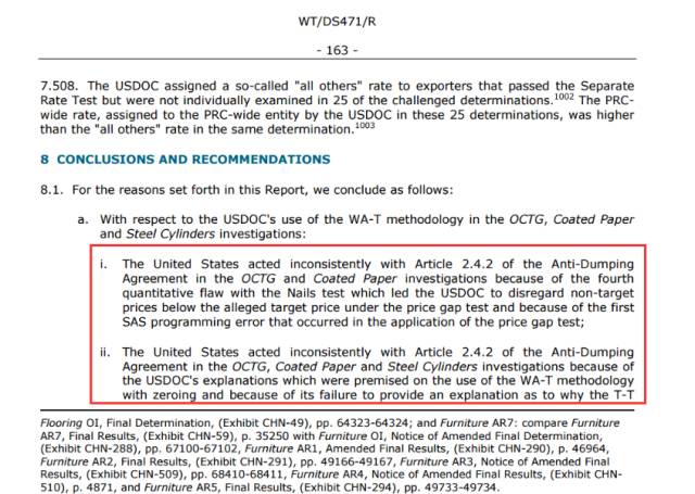 当地时间本周三(10月20日),中国将近3年前针对美国反倾销的起诉被判胜诉,世贸组织(WTO)公布其争端解决机构的专家组审查报告,支持中国主要诉讼请求,裁定美国13项反倾销措施违反世贸规则。
