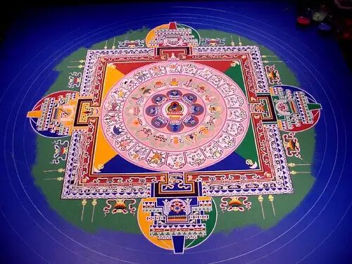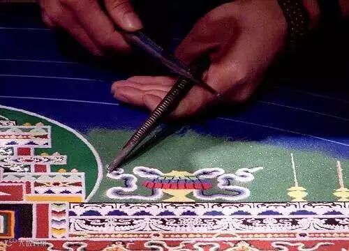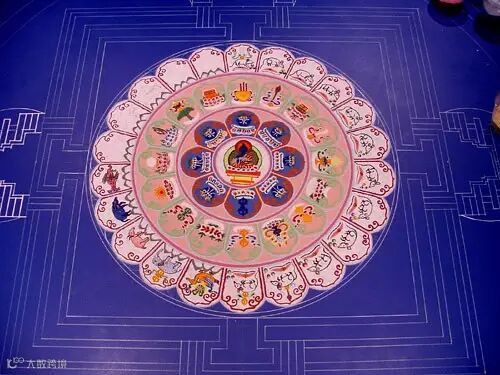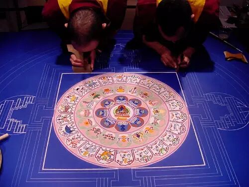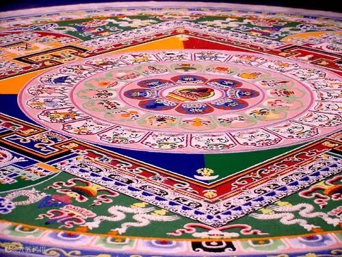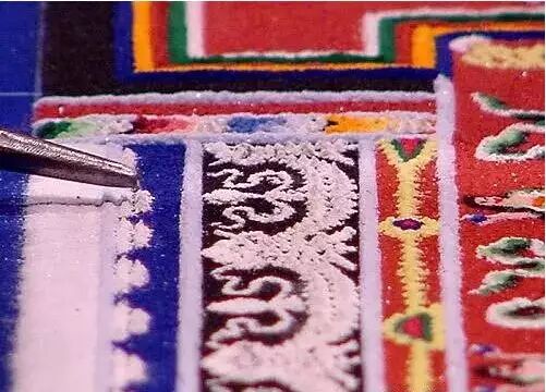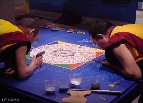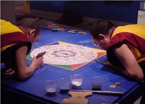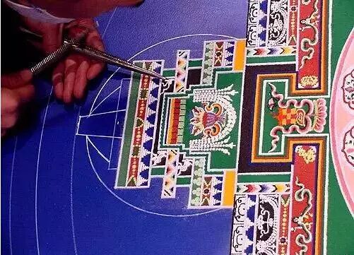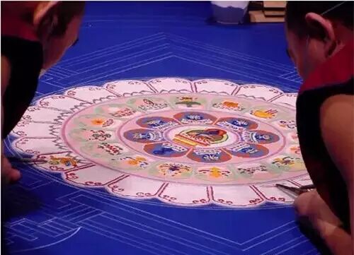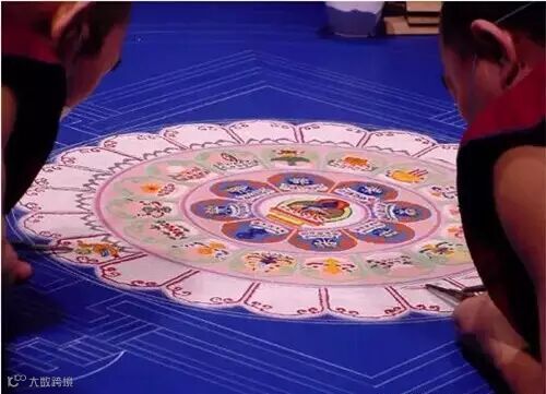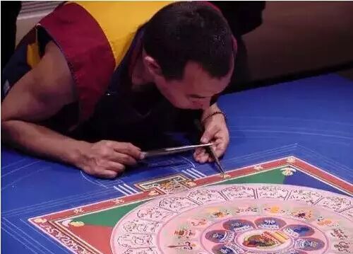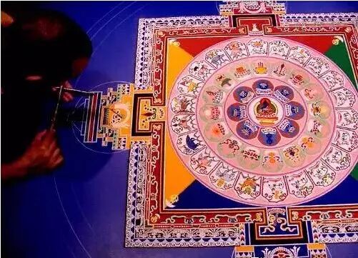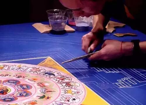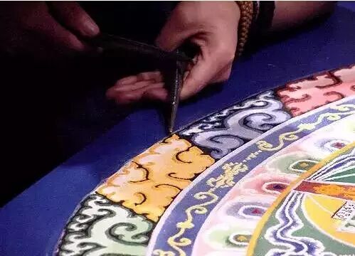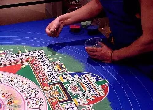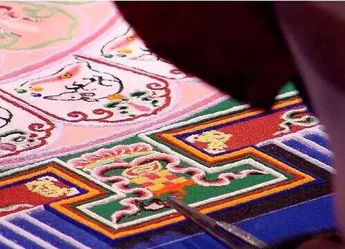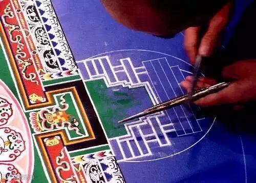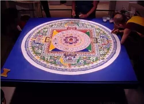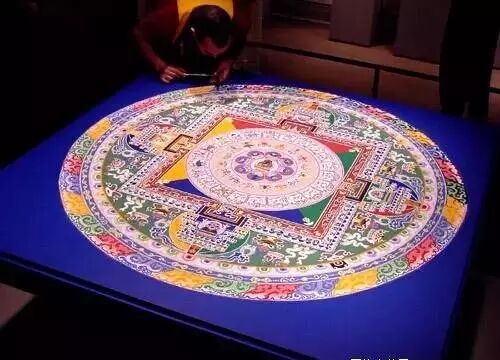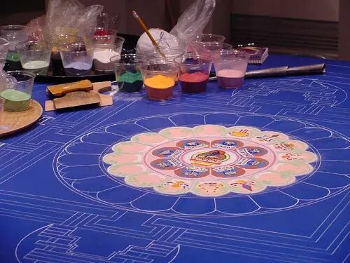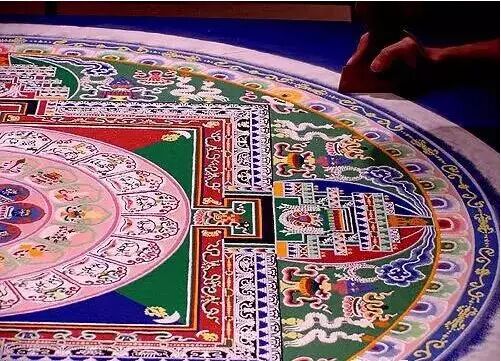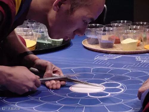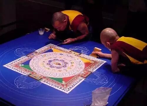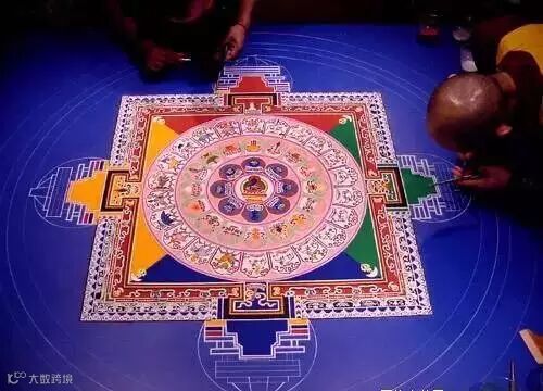 二爷本科二年级的构成课上,首次接触到坛城沙画,聚沙成城;它有一个很好听的藏语名字——“彩粉之曼陀罗”。这是藏传佛教中一种最独特也最精致的宗教艺术