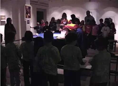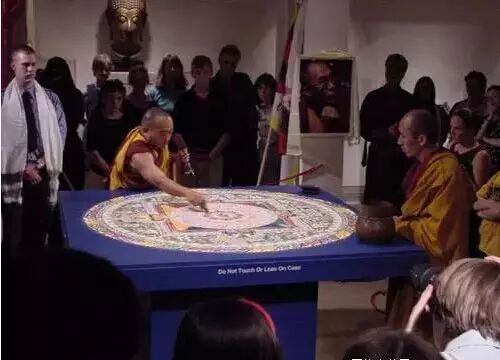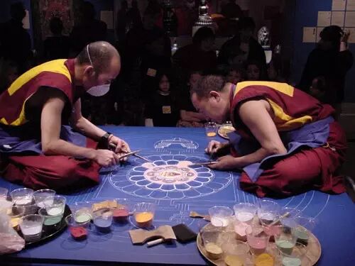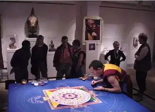 2001年2月,VenTenzin Thutop 和Ven Tenzin Deshek两个来自尼泊尔和西藏的和尚,在纽约Ackland的Vager画廊将“修建”一个“药师佛彩砂坛城”,来展现亚洲艺术。
