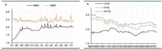 图表5 上周隔夜市场利率平稳 图表6 上周各期限国债收益率涨跌互现