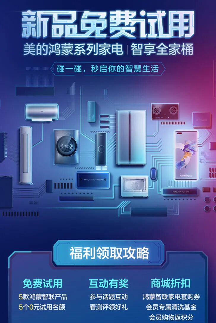 新品0元试用丨美的鸿蒙系列家电开放试用,会员专享福利,速抢>>