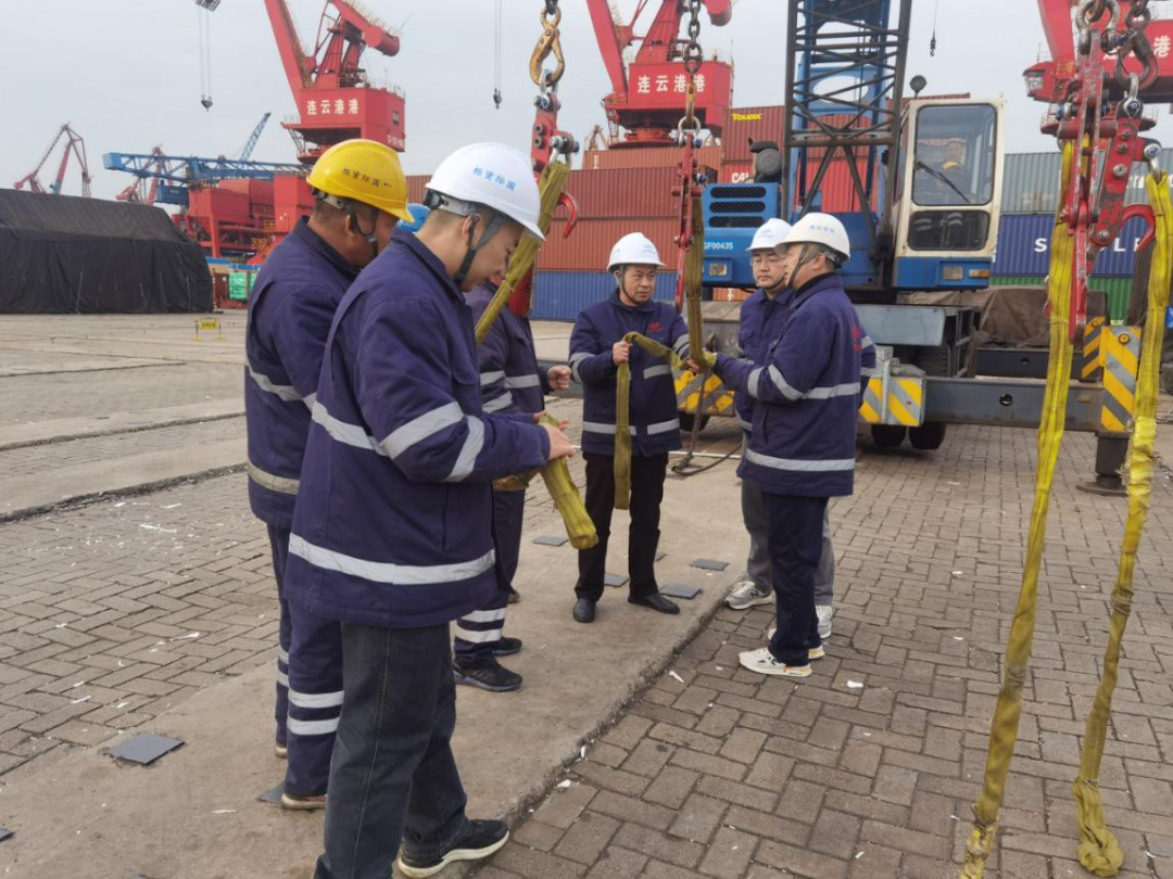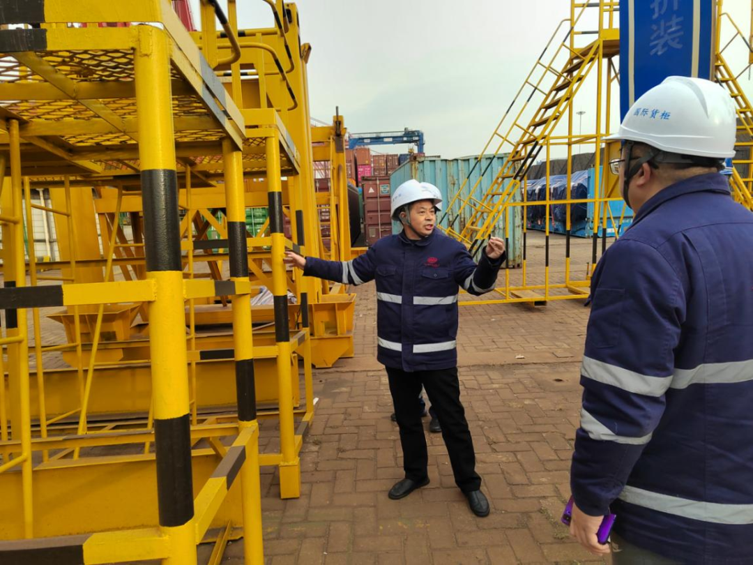 在纸浆装车现场,调研小组针对公司件杂货作业中涉及登高作业的货垛苫盖、车顶挂钩等危险性较大的作业环节,从安全保障和提升效率出发,就生产过程中人机配合人的不安全因素开展技术论证;围绕登高作业到货跺顶部苫盖篷布,作业人员的站位、防护需求,再到人机分离作业的需求,以实现人的安全保障等提出指导性意见和建议。