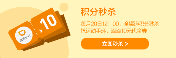 8月20日会员日12点全渠道秒杀:运动手环/滴滴10元代金券!