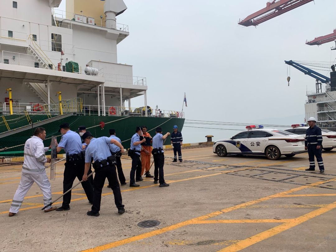 6月2日上午,公司联合边防检查站执勤三队在31#泊位开展反恐实战演练。