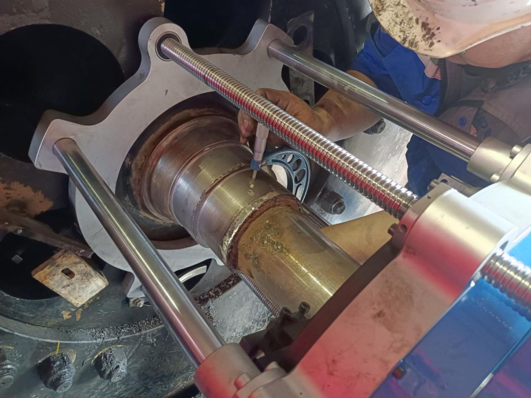 为了将设备故障对码头生产的影响降到最低,技术管理部现场商议对策,联系厂家并制定稳妥快捷的维修方案;随后厂家技术人员对卷筒轴实施堆焊、修补、研磨等技术修复工艺,历时三天两夜,经过技术拆解、修补、更换,以及动平衡和轻、重载运行检测,起升传动装置的各项指标均符合生产技术要求。