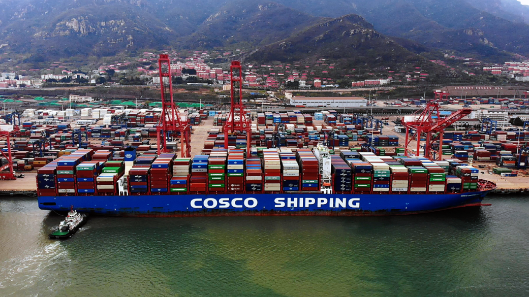 4月5日,中远海运“荷花”轮首航新东方货柜码头30#泊位,标志着连云港至美东直航航线的正式开通。