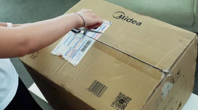 快递小哥将包裹如期送到!外包装箱尺寸约为50cm*41cm*35cm,方方正正地拿起来很有分量感。整个机子毛重约5.7KG,作为软萌妹子的我单手就能拎走箱子,so easy!