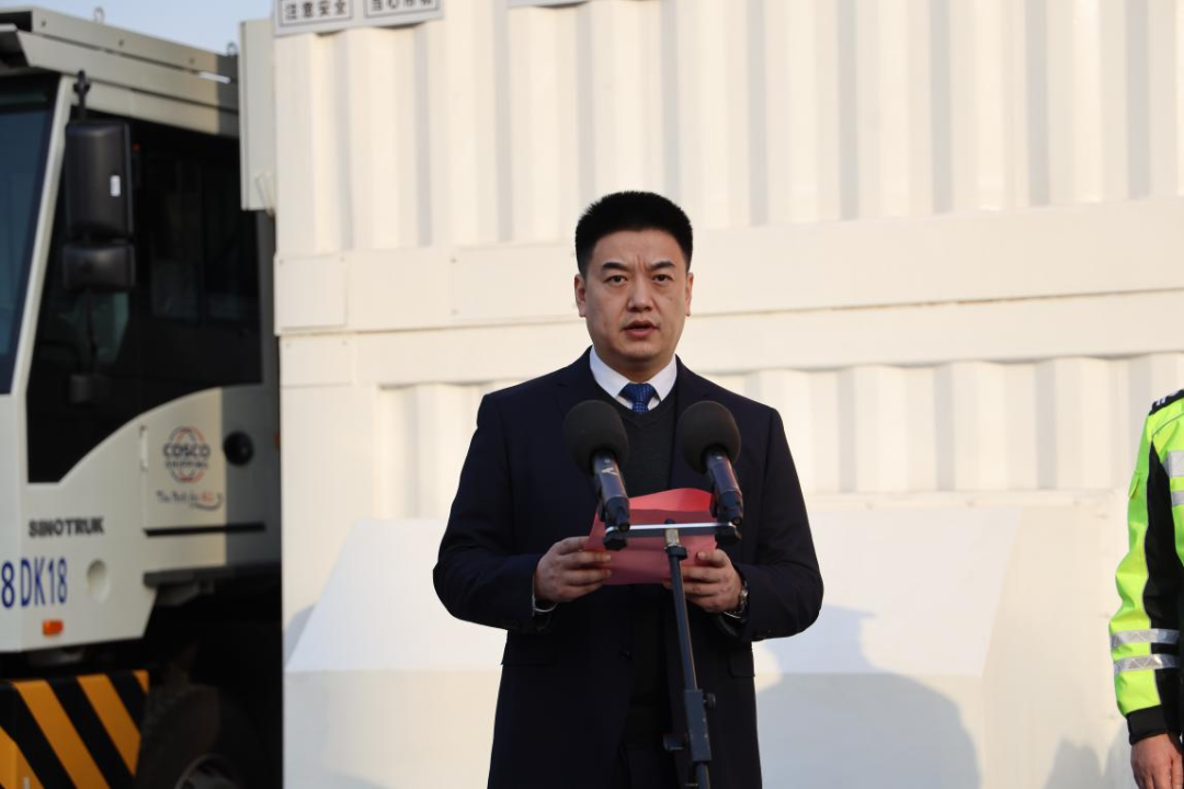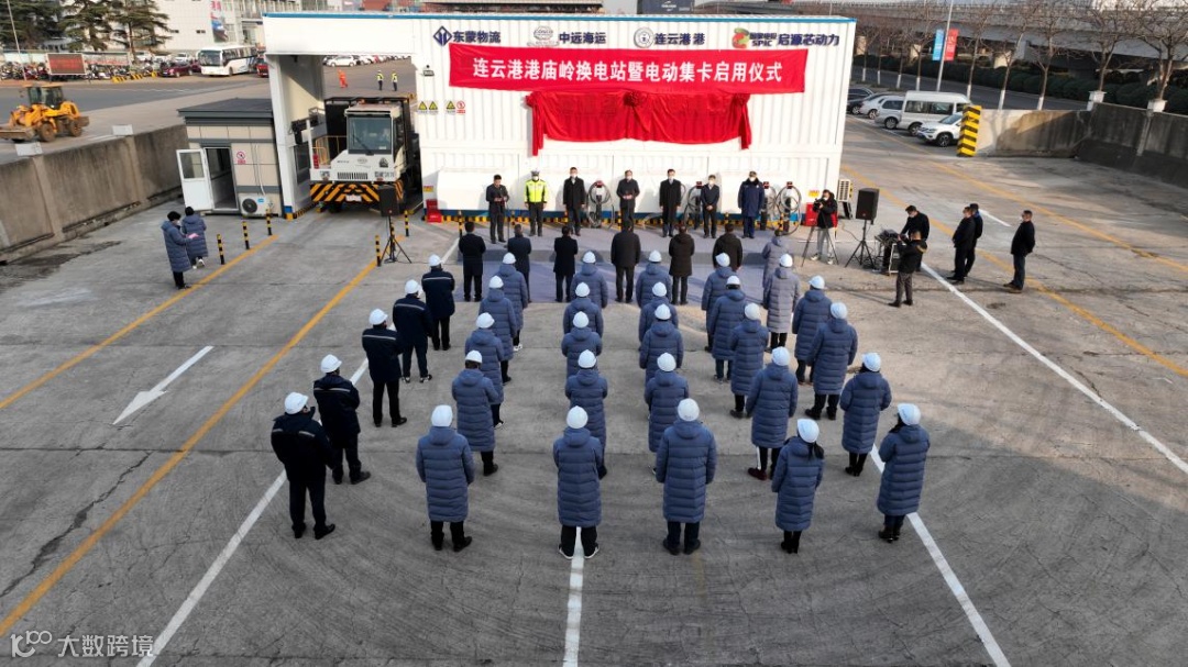 2023年1月17日下午,连云港港庙岭换电站暨电动集卡启用仪式在新东方国际货柜隆重举行。新东方国际货柜总经理王斌主持启用仪式。