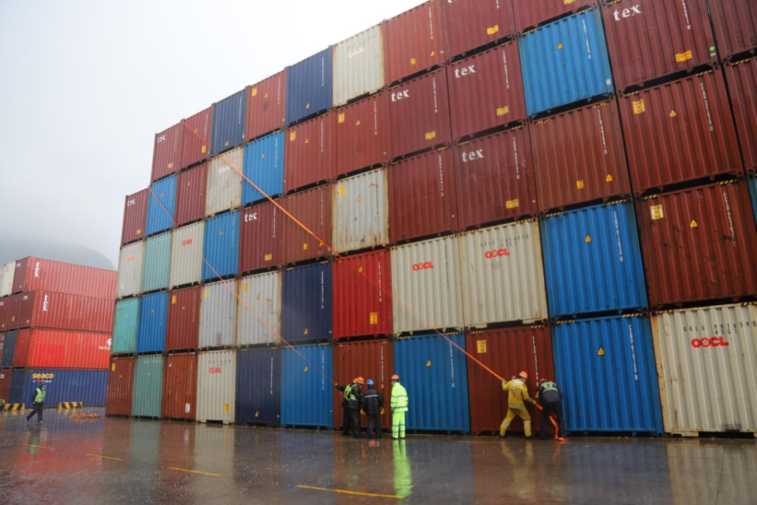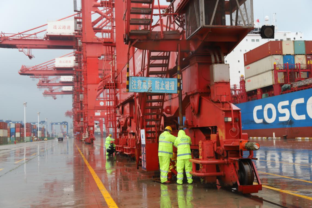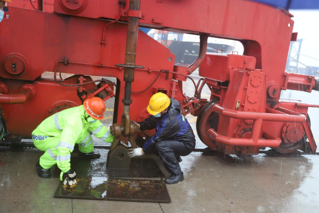 对岸桥、龙门吊、堆高机等大型设备落实防风加固措施