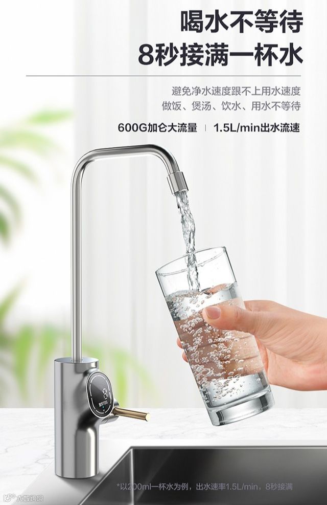 600加仑的大通量,只需8秒就能接满一杯水,大大提升日常生活效率。不仅能满足全家大小各种用水需求,甚至连护肤都能用上最干净的水。
