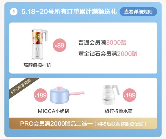 美的会员专享购物满额赠礼,高颜值小家电送给你~