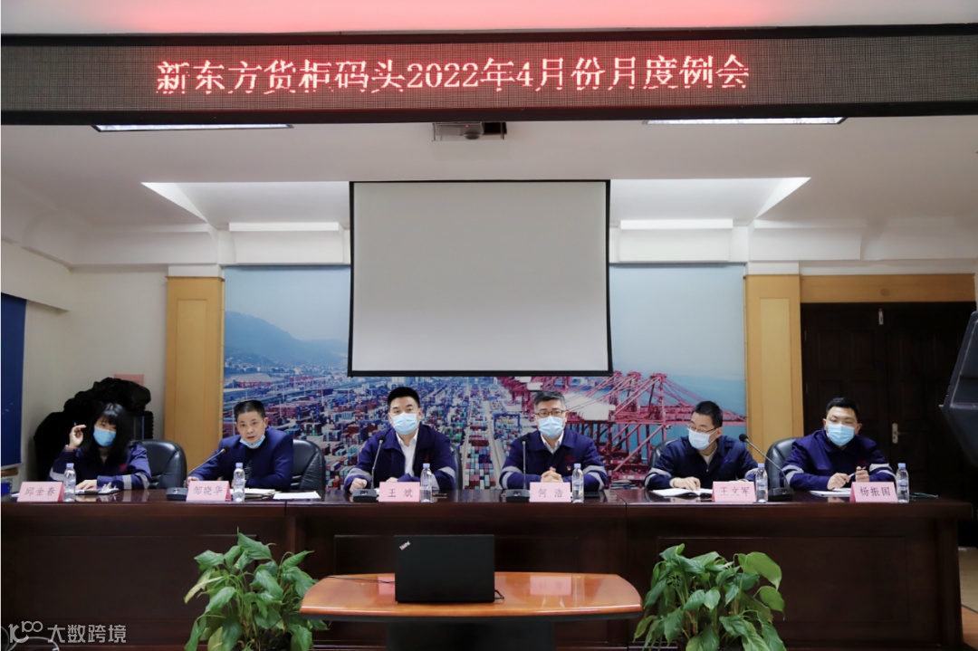 2022年4月6日,新东方货柜码头召开4月份月度例会,公司王斌总经理、何浩书记、邹晓华副总、王文军副总、邱金春总会、杨振国总助出席会议,公司班组长及以上管理人员参加会议。