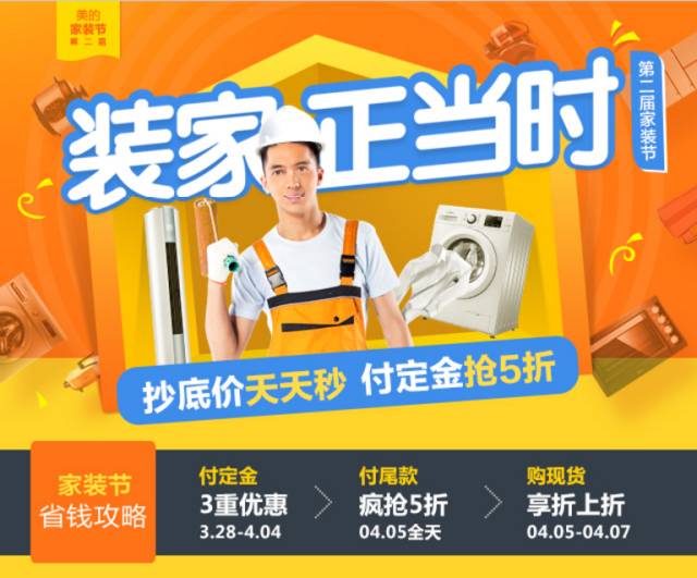 1.微信关注“美的商城”服务号,4月10日11:00后请回复关键词“家装节”查看返现名单