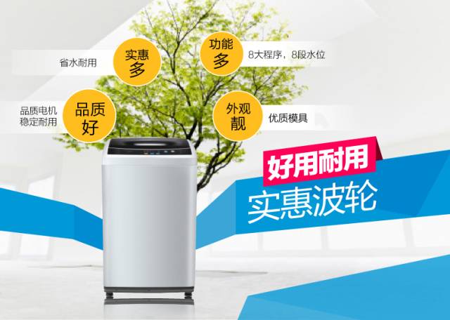 6.5KG容量,8大程序,8档水位,自动断电,不锈钢内桶,低噪静音