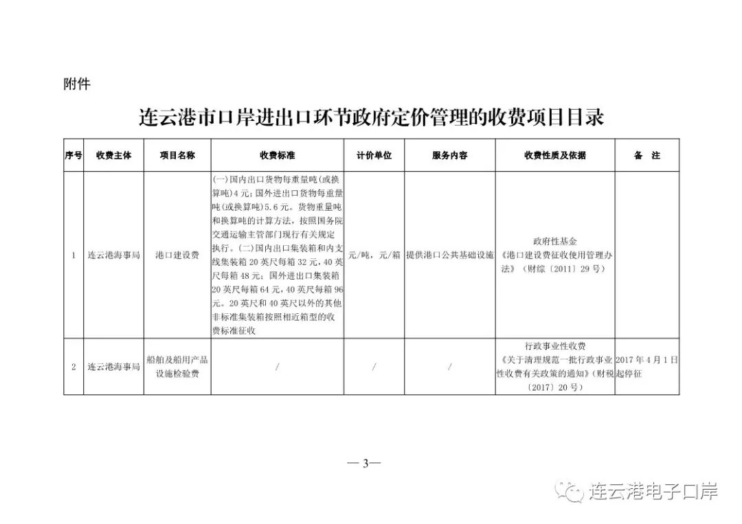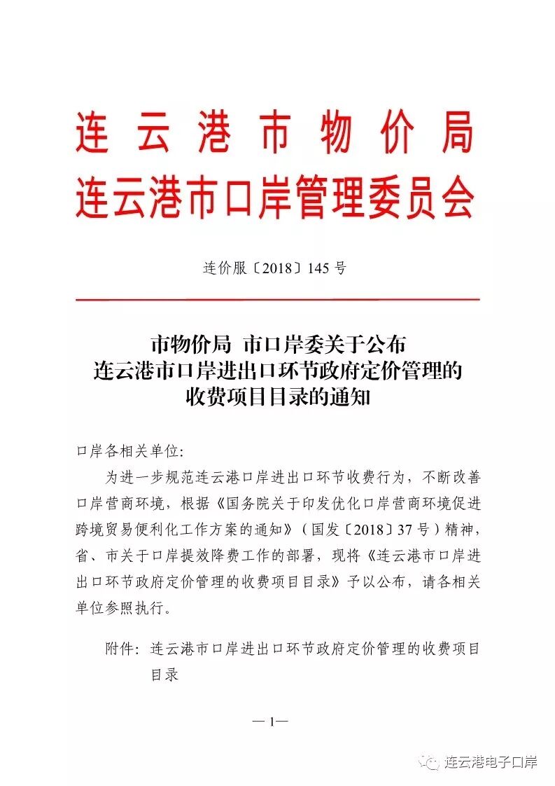 市物价局市口岸委关于公布连云港市口岸进出口环节政府定价管理的收费项目目录的通知