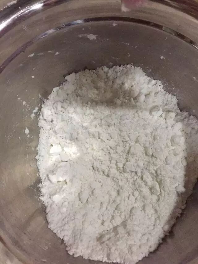 第1步,将粘米粉100g、糯米粉50g、糖20g用手动搅拌器混合均匀,加入水80g,和成粉团(状态:手握粉成团不散),然后搓成小颗粒,用粉筛过筛。