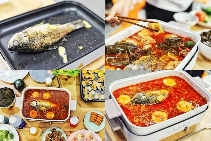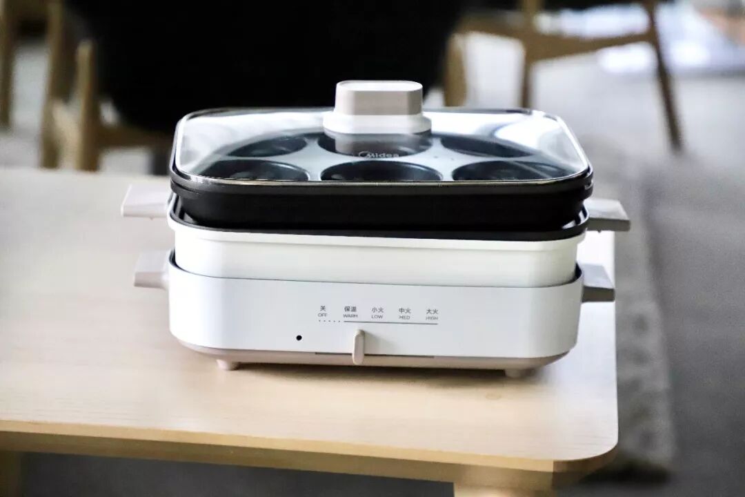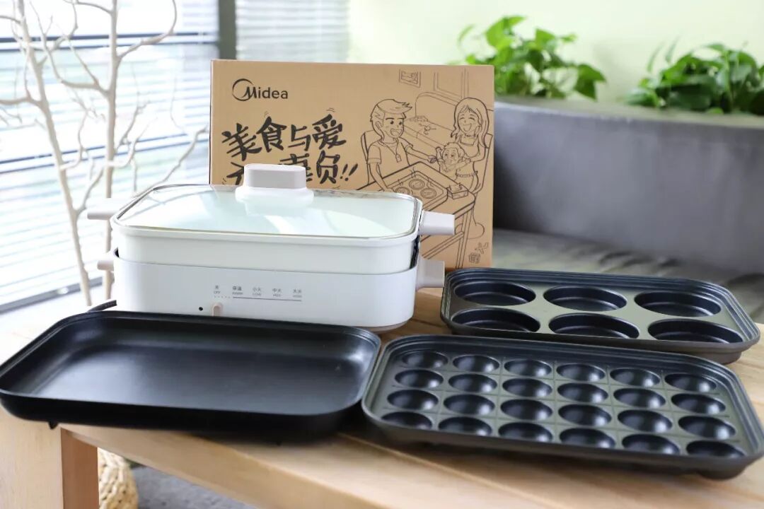 万能的【美的料理锅】,四个可以拆卸更换的烤盘,百变烹饪能力,做出N多种美食。