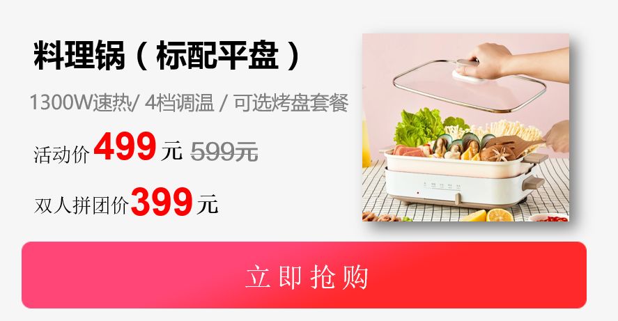 网红料理锅(配平底煎盘)原价599元,限时活动499元,两人一起买只需要399元/人!快喊姐姐妹妹一起来呀~!