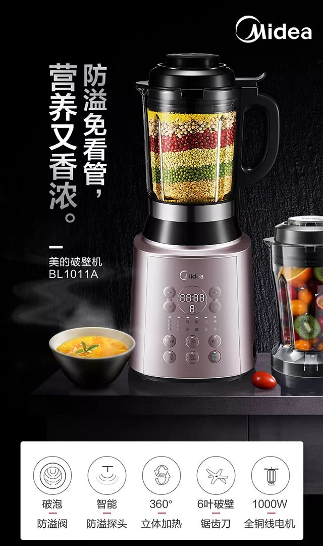 美的MJ-BL1011A破壁机,冷热双杯,荤素不串味