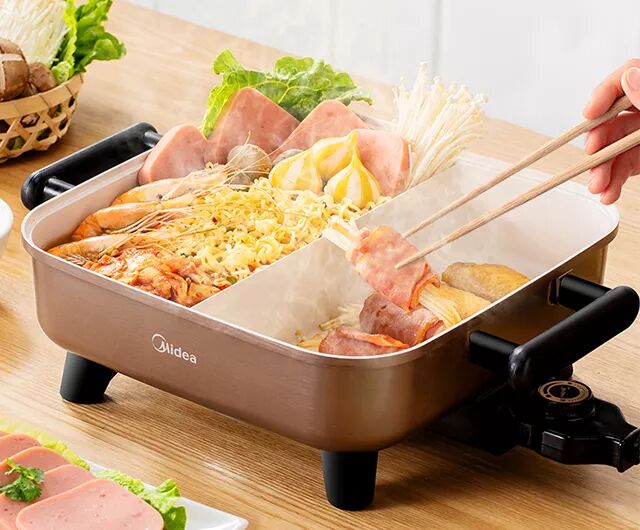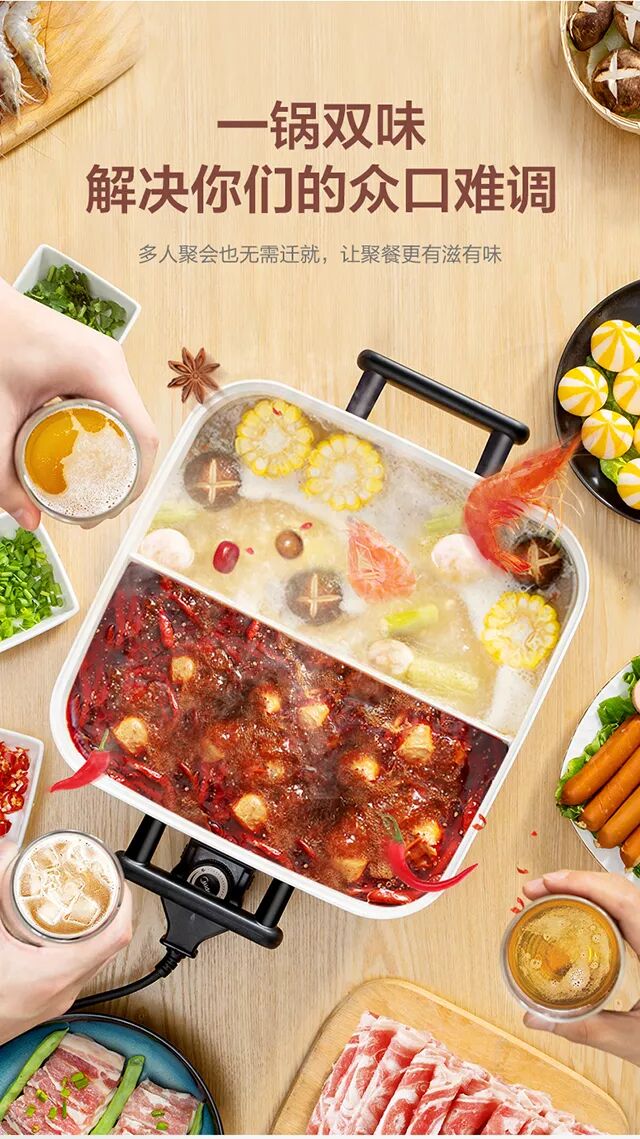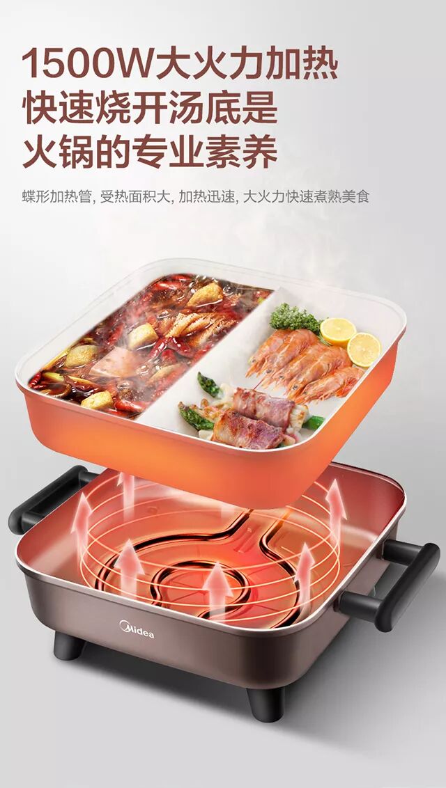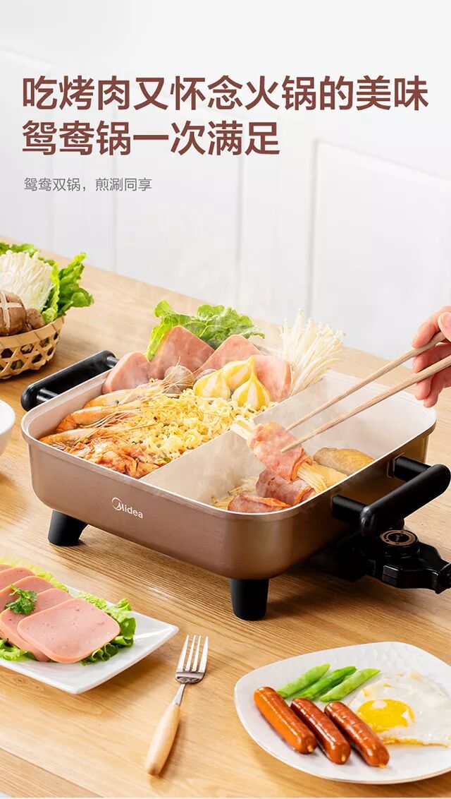 鸳鸯锅设计,一锅双味,可煎烤,可涮锅,想吃什么,无需妥协,煎涮同享。