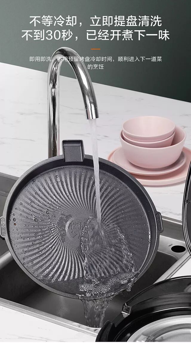 带手把可拆盘,不要慢半拍的等待,直接就可以端上桌,食物更加新鲜。无需等待冷却,立即提盘清洗,不到30秒,已经开煮下一味。