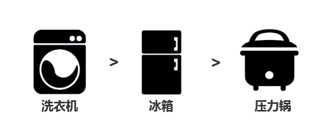 洗衣机>冰箱>压力锅