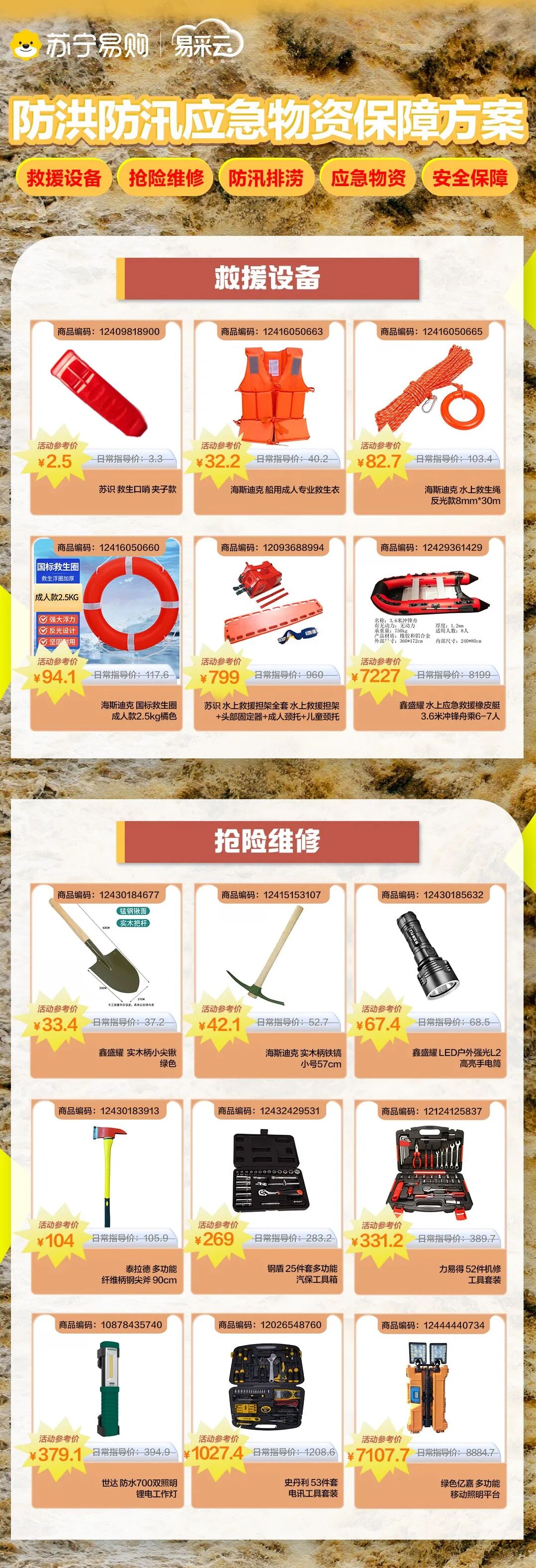 随着全国进入主汛期,防汛应急物资需求激增。作为专业的数字化采购服务商,苏宁易采云充分发挥全国属地供应链优势,已累计为国家电网、中国电信、中国联通、北京地铁、山东港口等上百家企业提供防汛物资保障服务,累计交付防汛物资超百万件。
