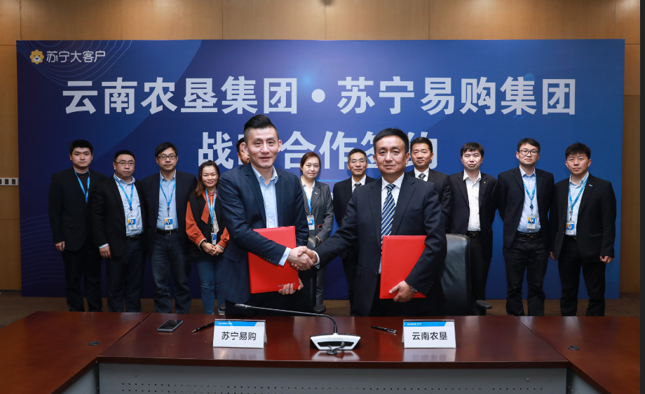 11月17日,云南农垦集团副总经理高绍周一行造访苏宁南京总部,与苏宁易购集团B2B公司总裁胡旭健等高层进行深度会晤。双方最终签订战略合作协议,将在B2B业务、云品出滇、区块链运用、党建扶贫等方面进行深入合作,为推动云南省农业经济发展探索新模式。