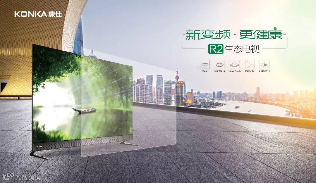 康佳R2电视,悬浮屏外观设计,无缝隙、无拼接、全贴合,更采用全新变频技术,光谱变频,光学防蓝光,从背光源剔除有害蓝光,达到健康护眼的目的;运动变频,动态画面补偿,运动画面无残影;控光变频,根据画面实时进行背光分区+屏幕分区调光。