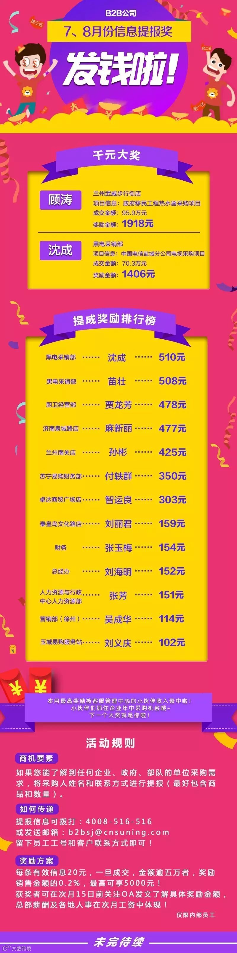 获奖者可在次月15日前关注OA发文了解具体奖励金额,总部薪酬及各地人事在次月工资中体现!