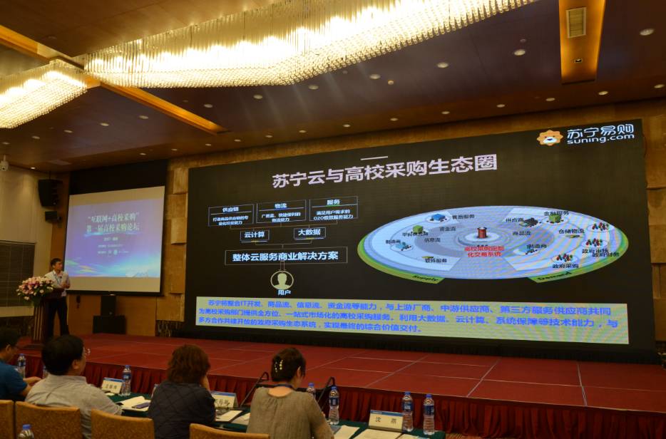 在沙龙环节,来自高校、供应商、服务商等涵盖高校采购全产业链代表就如何推动“互联网+高校采购”发展各抒己见、畅所欲言。其中苏宁提出的“打造高校采购生态圈”概念引起与会代表的兴趣。