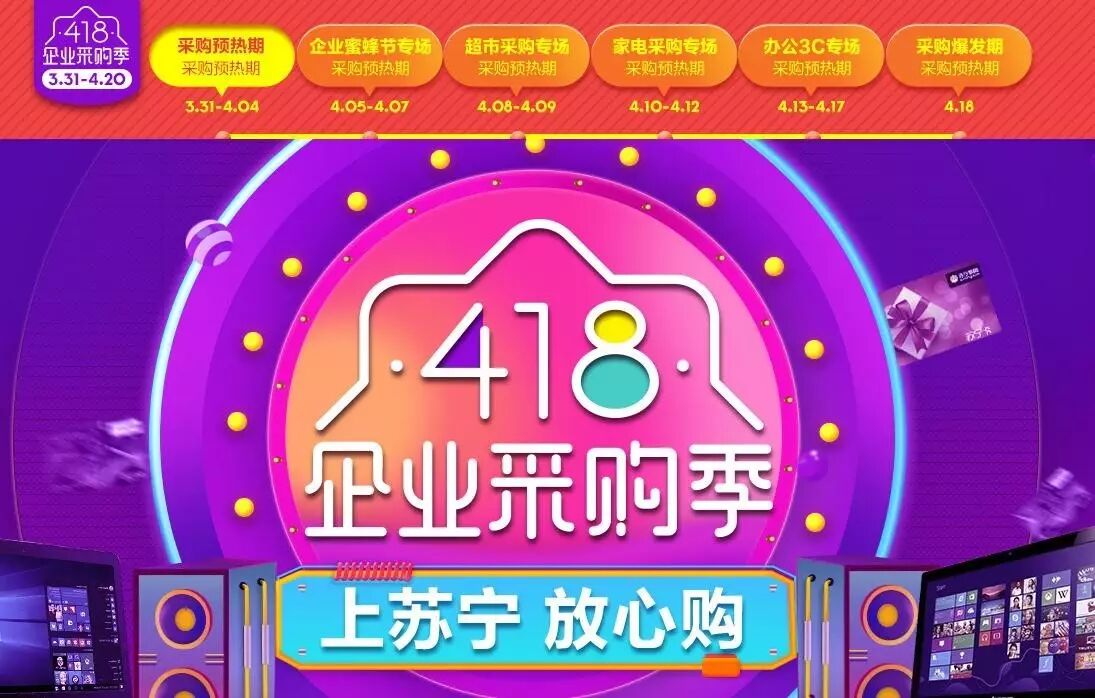 一年一度的418电商大促已经到来,作为开年第一场大型促销活动,苏宁易购早已摩拳擦掌,准备打好2017第一仗。3月31日苏宁企业购早已开启418企业采购季,蜜蜂节、c超市采购、家电专场等一波波活动,专为企业客户提供专享福利。