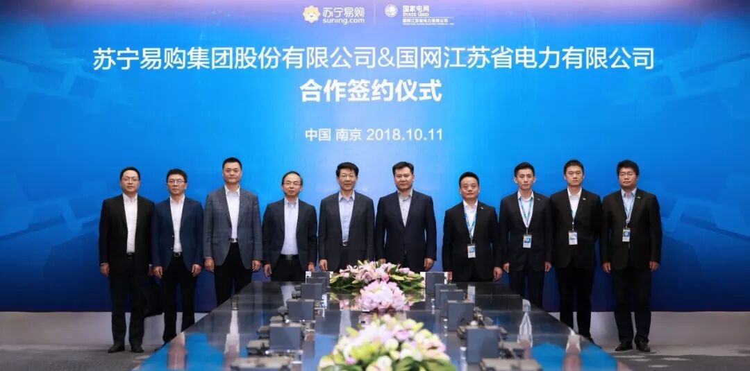 10月11日,国家电网江苏省电力公司(以下简称“国网江苏”)董事长尹积军一行到访苏宁,与苏宁控股集团董事长张近东就科技、物流、采购、小店、置业、公益等多个领域签署了 合作协议。未来,双方将在居民家庭电气化推广、促进智能家电高端应用、打造综合能源服务示范点等领域加强合作。