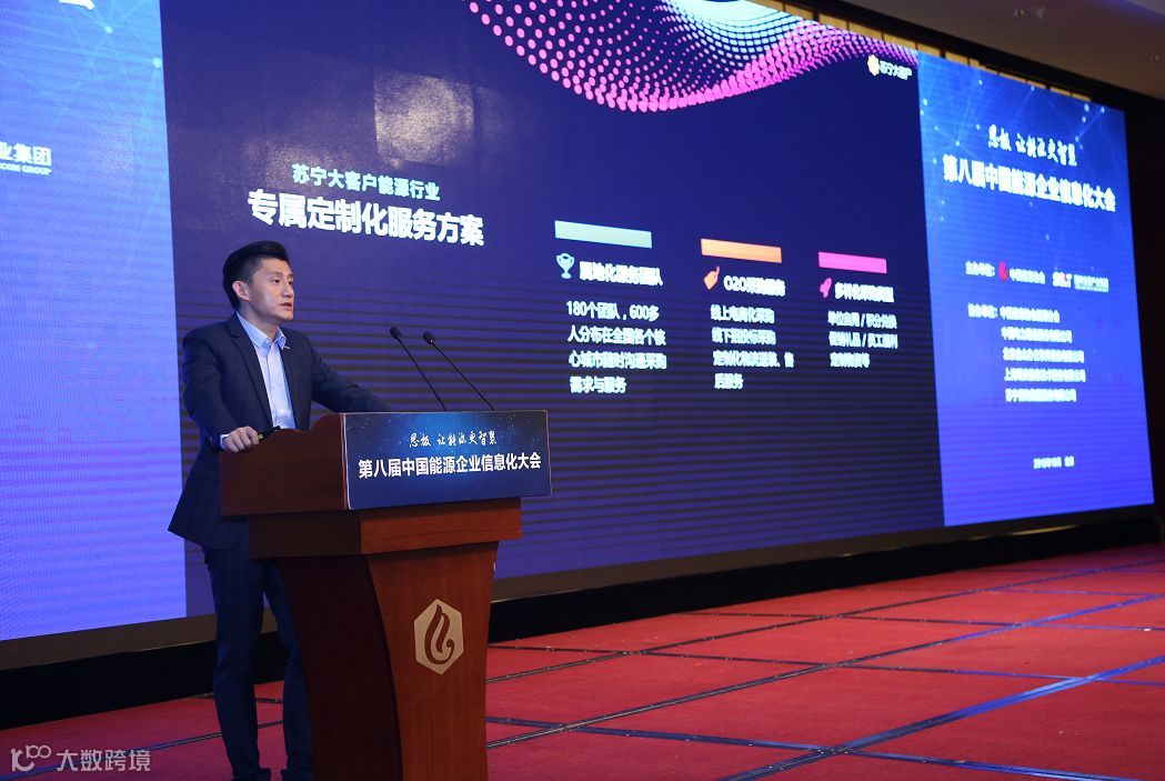 ▲苏宁大客户总裁胡旭健发表苏宁能源行业双线采购解决方案