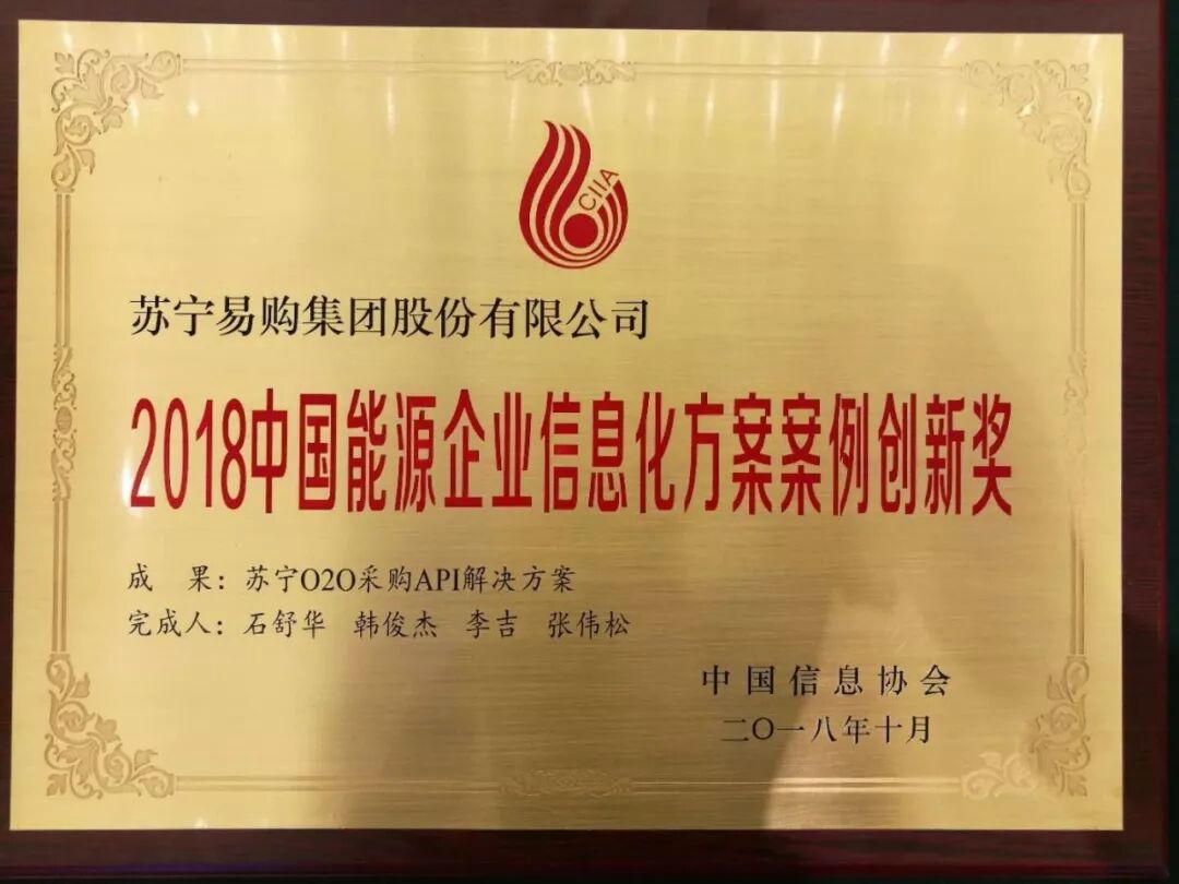 苏宁大客户作为信息化采购平台商优秀代表应邀出席, 并携“苏宁O2O采购API解决方案”获得中国能源企业信息化方案创新奖。