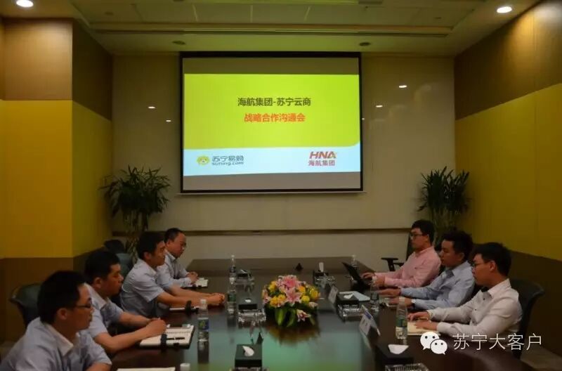 近日,海航进出口有限公司副总裁秦伟带高层业务团队来访苏宁,双方总结了前期合作成果,并就联盟会员、办公采购、员工福利、物流、易购服务站、超市等方面的合作进行了深入沟通。