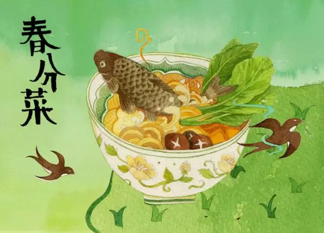 春分时节,野生春菜长势凶猛,祖先们就研究出了“春分吃春菜”的吃法,把鲜嫩的春菜夹到沸腾的鱼片汤里从左到右、再从右到左涮两遍,起来、吹口气、把筷子伸进嘴里,春分时节的美味也跟着溜进喉咙。