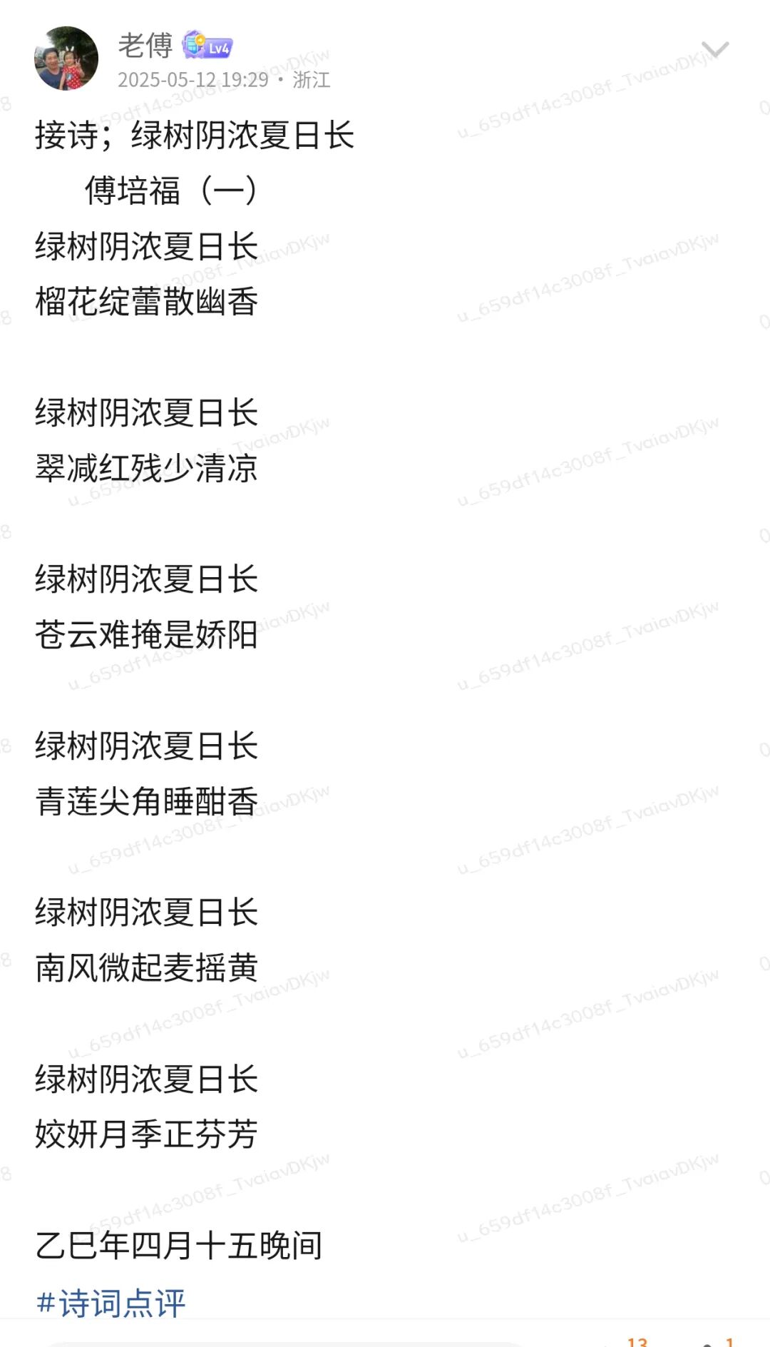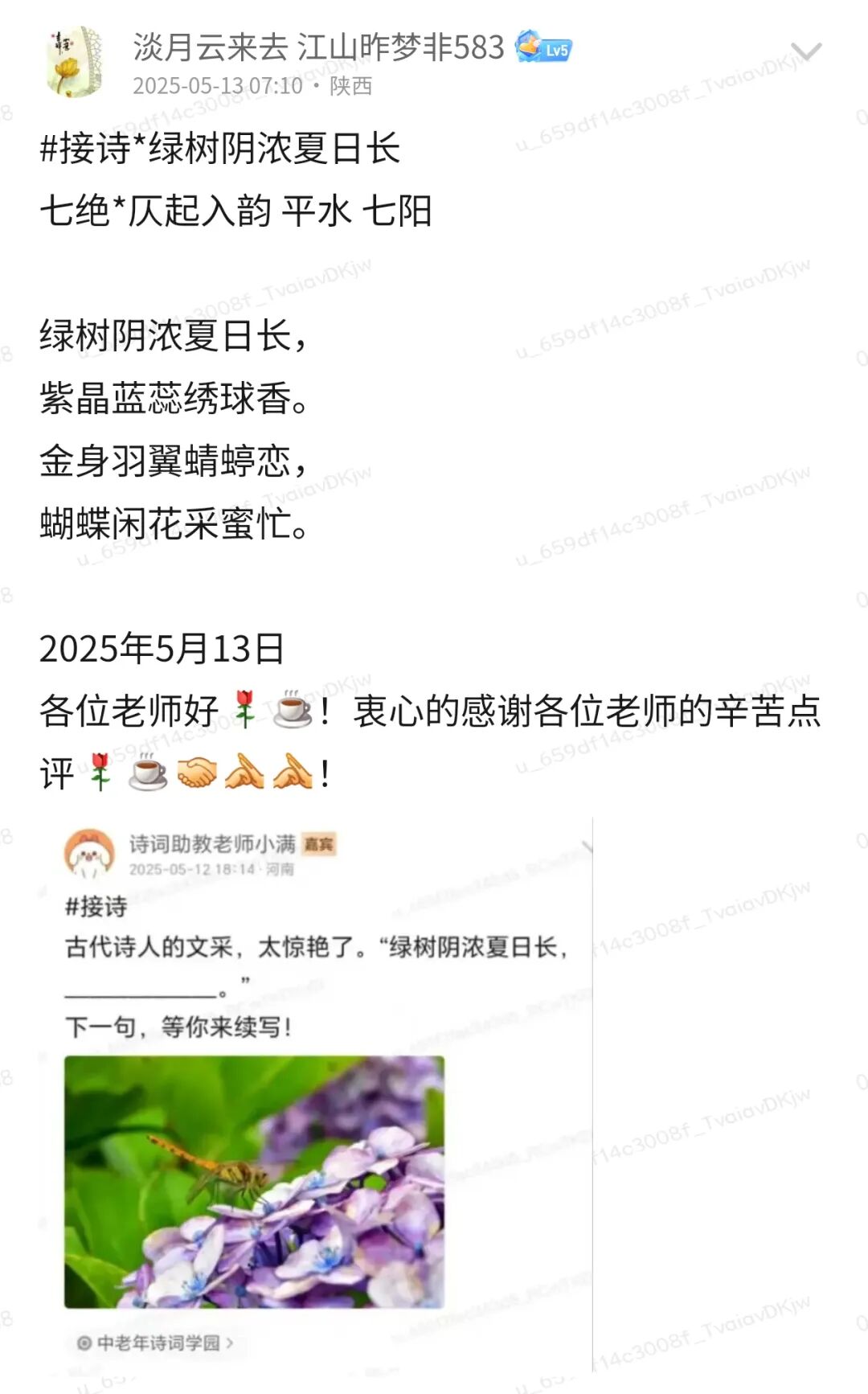 “语尽意未休,断句续佳篇。”接诗活动为“诗词天地会员圈”特有活动,诗友们以独特的视角展现诗词之美,将自己所学所知都展现出来。