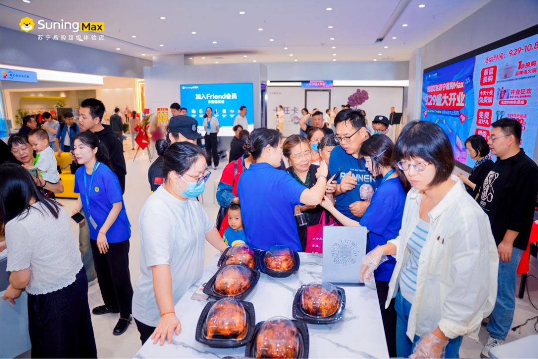 苏宁易购也注重将本地文化融入门店场景。9月29日,“寻味华夏——我就是厨神”全国厨艺争霸赛正式启动,溯源八大菜系,落地26城举办40场线下PK,并配套开展260余场品鉴活动,包括主题溯源品鉴、大师厨艺课堂和中秋月饼工坊,让消费者在门店中沉浸式体验美食文化。各地门店的开业店庆也结合地方特色举办非遗市集。在杭州庆春路Suning Max店,苏宁易购将联合三星推出非遗漆扇、糖画体验活动,并携手卡萨帝举办“月满华章·乐享生活”中秋月饼DIY和音乐品鉴会。