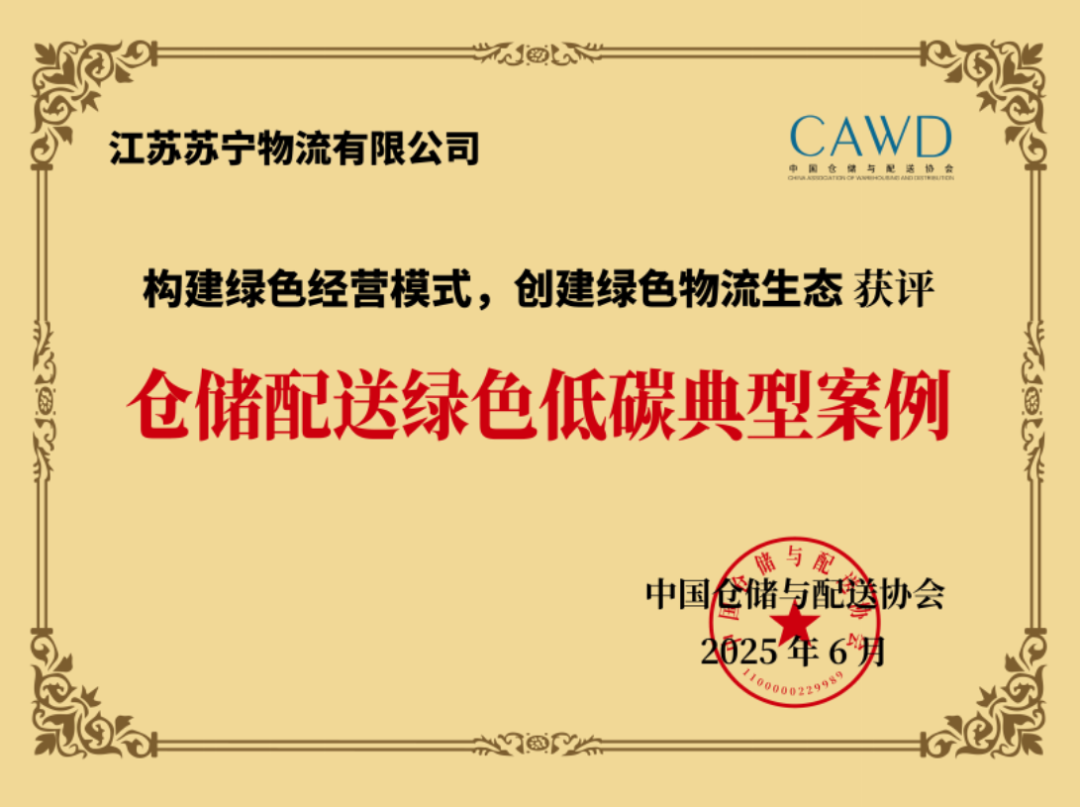近日,中国仓储与配送协会召开第二十届中国仓储配送大会暨第十二届绿色仓配大会,苏宁物流凭借其体系化的绿色低碳实践,成功入选“仓储配送绿色低碳典型案例”,并受邀成为《绿色仓储配送行动宣言》联合发起单位之一。