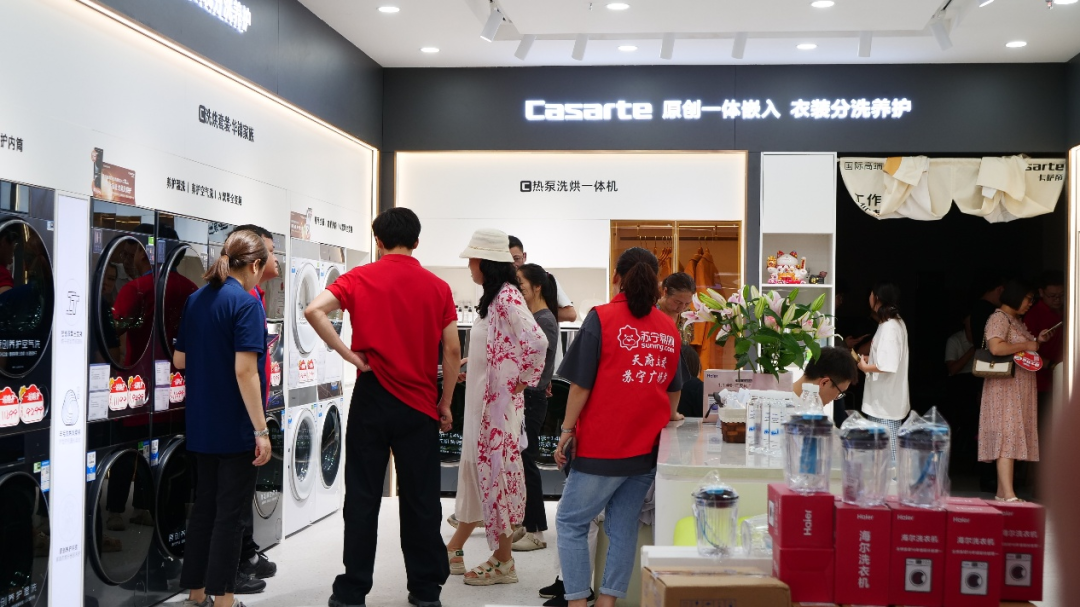 有好场景、好服务,价格也更有竞争力。618期间,苏宁易购在全国门店开展“万人空巷抢家电”活动,联手品牌在空调、冰洗、厨卫、彩电等核心品类提供全场景优惠,叠加“套购满减”“预存翻番”“到店抽奖”“免费安装”“10年保修”等开业、店庆促销,让逛购体验更上一层楼。各区域门店结合当地消费需求开展不同活动,如Suning Pro杭州省家电市场店开业期间推出“8件套家电低至6180元”“买手机送3年免费贴膜”等福利,激发门店消费热情。在Suning Max重庆观音桥步行街店,套购至高可赠iPhone 16,店庆期间走进社区、村镇提供免费公益清洗,“不限品牌、不限型号、不限数量”,让消费者更省心、更放心。
