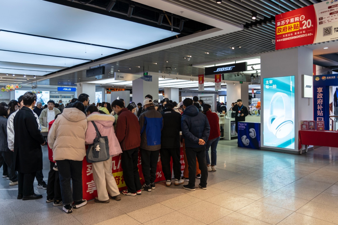 商务部数据显示,已有84.4万名消费者购买了12大类家电以旧换新产品103.7万台,792万名消费者申请了1078.6万件数码购新补贴。线下门店人潮涌动,“新国补”开展以来,苏宁易购全国门店家电以旧换新订单攀升快速、3C产品销量翻番。其中,1月20日手机等数码购新补贴开展至今,苏宁易购全国手机、平板、智能手表手环分别同比增长243.1%、197.6%、224.1%。