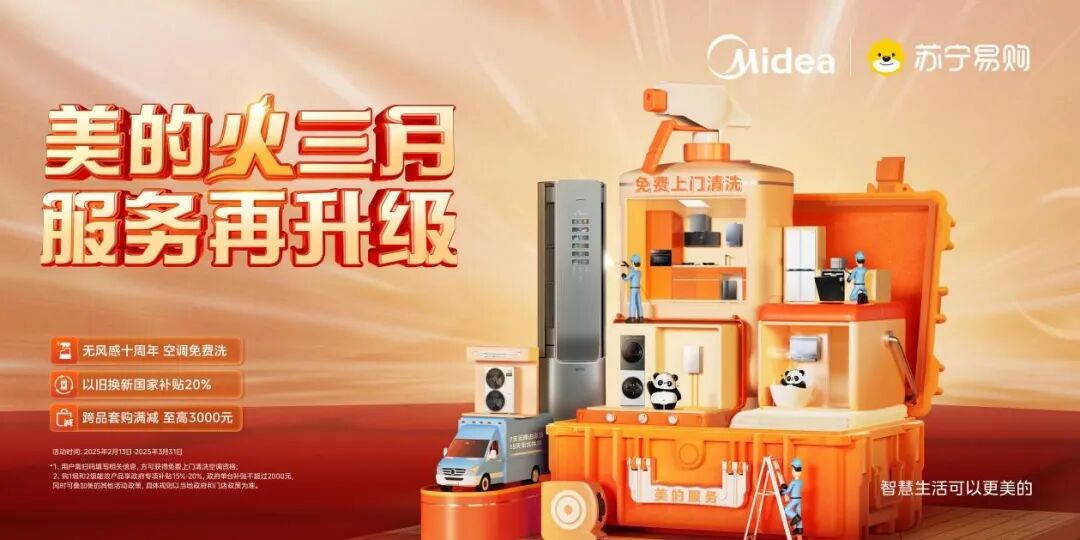 开春装修季叠加以旧换新政策加力扩围,家电市场热潮涌动,苏宁易购联合美的打造的“火三月”大促火热来袭。活动期间,针对购新房、老用户等群体,双方将推出预存翻倍、抖音本地生活券、套购至高减3000元、机票车票当钱花、新家福利惠、老用户换新惠等多重换新权益。恰逢美的无风感空调十周年,双方升级老用户免费清洗、无风感柜挂十免安装等服务,助力用户品质焕新生活。
