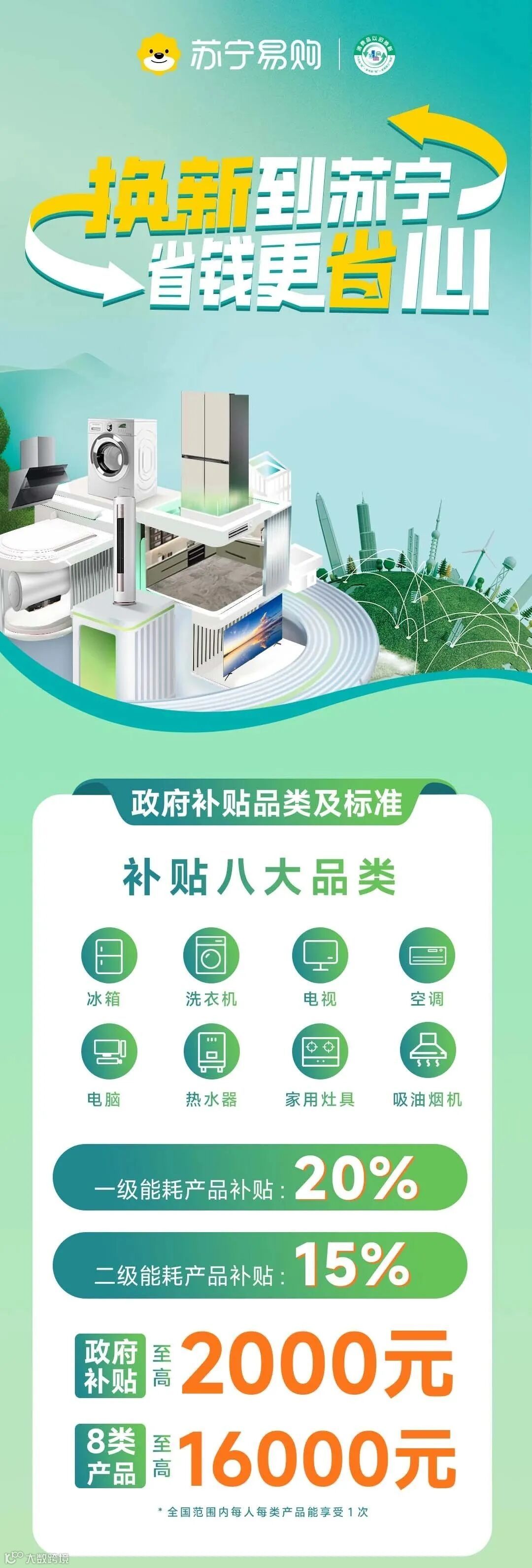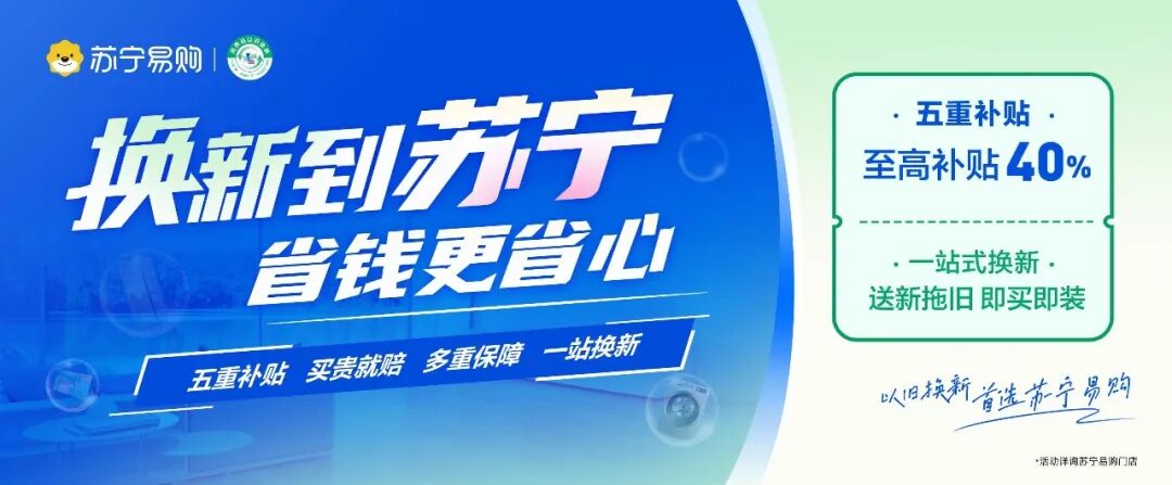 作为政府补贴指定家电零售平台,苏宁易购率先响应政策,积极承接国家以旧换新活动并加码补贴。除政府补贴外,苏宁易购还将联动品牌工厂、银行共同加码资源投入,五重补贴至高优惠40%,用更多真金白银促进以旧换新消费,满足用户家电换新需求。